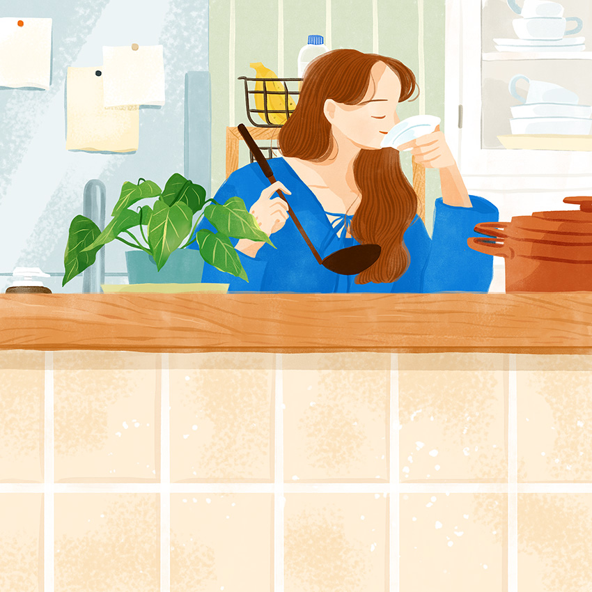 穏やかな色調と柔らかなタッチで表現しました。