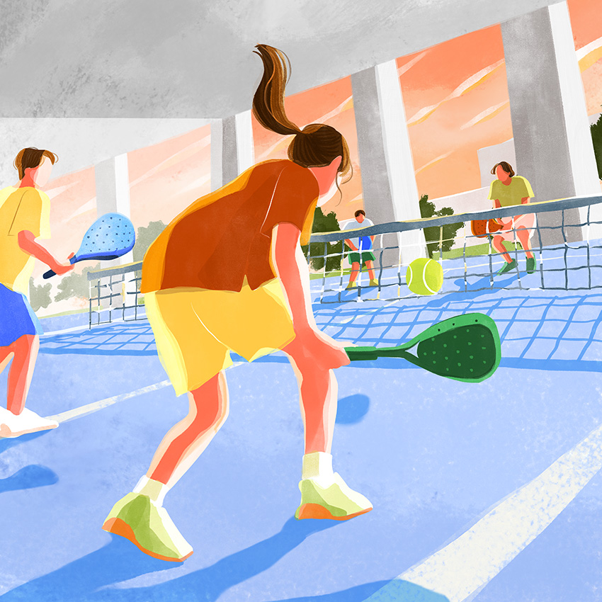 芝生広場や商業施設、パデルコートなど、新しい街の暮らしの情景や温かい家族の時間を